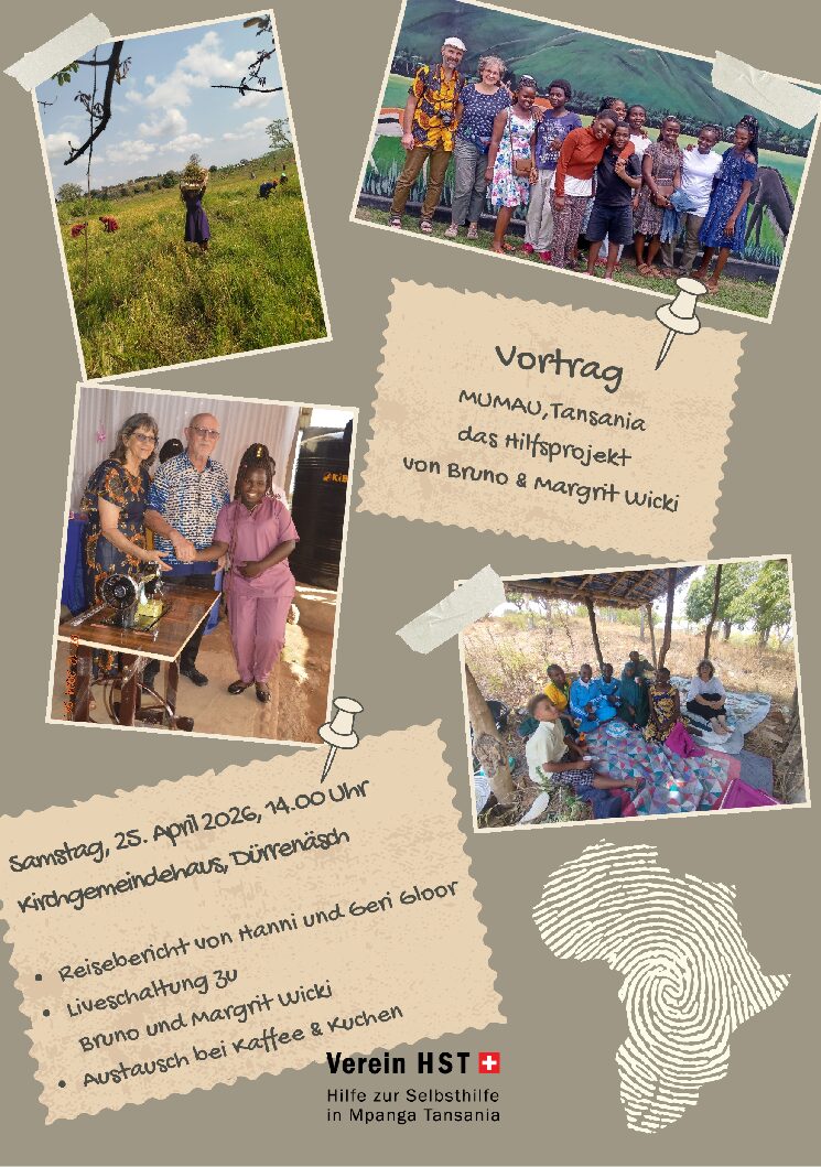 Hanni und Geri berichten in einem persönlichen Reisevortrag über ihren Besuch in Manga. Zudem dürfen wir uns auf eine Live-Schaltung nach Mpanga freuen, wo uns Margrit und Bruno direkt aus Tansania Einblicke geben werden.